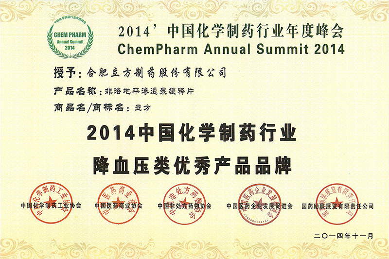 2014年中国化学制药行业降血压类优异产...